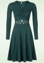 “A forest stitched at the waist, a story wrapped in green.” Ze heeft een prachtige halslijn met een ’twist’, lange mouwen en loopt vanaf de taille uit in een zwierige semi swing rok. Uitgevoerd in een soepel vallende, stretchy, donkergroene bio katoenmix met een geborduurde print op de taille. * Semi swing model * V-halslijn * Twist detail * Lange mouwen * Geen rits of knopen; aantrekken en ready to go! * Valt bij een lengte van 1,70 m net over de knie