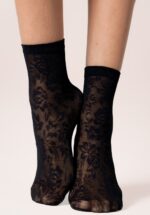 Als het te warm is voor een panty, draag dan deze Primrose Sheer Ankle Socks in Black om je outfit tóch dat beetje extra te geven! Deze kousen zijn gemaakt van een kwalitatief hoogwaardig, aangenaam doorzichtig stofje met een ingewerkt patroon van rozen. Ze mogen gezien worden en zijn dan ook super leuk in combinatie met een paar mooie pumps, sneakers, een rok of een jurkje. Cute! * One size * Doorzichtig * Enkelhoog