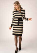 “Sweater weather, meet my knitted dress – the MVP of staying snugly chic!” 😉 Kim is uitgevoerd in een zachte, fijngebreide viscosemix met een geweldig retro patroon en ingewerkte glitterdraad die je heerlijk warm houdt. * Geen rits- of knoopsluiting; aantrekken en ‘ready to go’ * Valt bij een lengte van 1,70 m net over de knie