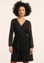 “You don’t always need a sparkle… let the dots do the talking.” Deze jurk met overslag is uitgevoerd in semi-doorzichtig dubbellaags stretchy mesh met een polkadot flock-print. * Overslag met drukknoopje * Lange pofmouwen met elastiek * Elastische taille * Afneembaar striklint, voor een extra ‘snatched’ taille * Reikt bij een lengte van 1,70 m tot net boven de knie * Wij raden aan een topje en/of broekje onder deze jurk te dragen om doorschijnen te voorkomen