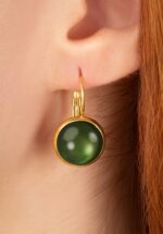 Op zoek naar oorbellen die écht bij iedere outfit passen? Dan zijn deze 60s Goldplated Dot Earrings in Glossy Moss ideaal voor jou! Of je nu voor de classy fifties look gaat, of toch liever seventies boho chique, deze korte hangers zijn lichtgewicht en passen werkelijk overal bij. Uitgevoerd met een verguld haakje en voorzien van een glanzende, mosgroene steen… ”eye and ear candy!” * Hangertjes * Vergulde roestvrijstalen leverback sluiting * Verkleuren en vlekken niet * Nikkelvrij (anti-allergeen)