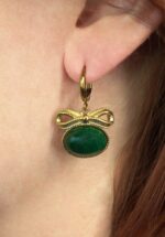 Deze oorbellen met originele, donkergroene vintage glazen stenen hebben ons weten te strikken! 😉 Uitgevoerd met een verguld haakje en een schattige strik ‘on top’. * Hangertjes * Vergulde roestvrijstalen leverback sluiting * Verkleuren en vlekken niet * Nikkelvrij (anti-allergeen)