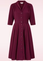 Deze D’Laine jurk is een vintage droom die uitkomt! Supervrouwelijk en elegant dankzij het kraagje, de reeks knopen en 3/4-mouwen. Vanaf de taille loopt ze uit in een zwierige, volle swingrok die een prachtig vrouwelijk silhouet creëert. Uitgevoerd in een stevige maar soepel vallende stofmix met een vleugje viscose, in een rijke bordeauxrode kleur met een fijne stretch voor heerlijk draagcomfort. Dromen zijn niet altijd bedrog! 😉 * Full swing model * V-halslijn * Afgeronde kraag * Reeks knopen * 3/4 mouwen * Kan gecombineerd worden met een van onze petticoats * Valt bij een lengte van 1,70 m over de knie