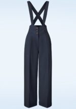 ”Ladies, remember: with great pants comes great responsibility… and an unbeatable sense of fashion!” 😉 Deze cutie is uitgevoerd in een soepel vallende, marineblauwe stof (stretcht amper) die heerlijk draagt. * High waist voor een super vrouwelijk silhouet * It has pockets! * Afneembare en verstelbare ‘bretels’ * Knopenrij * Wijde pijpen