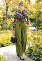 “High waist, bold moves.” Deze Ottavia pantalon in olijfgroen combineert een elegante hoge taille met functionele knopen aan de zijkant en wijde pijpen met vaste omslagjes voor een vloeiende, retro-geïnspireerde look. De zachte, soepel vallende stofmix laat je silhouet prachtig uitkomen en geeft je outfit een tijdloze vintage touch. * Hoge taille * Functionele knopen aan de zijkant * Wijde pijpen met vaste omslag