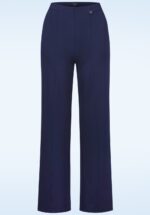 Geïnspireerd op de pantalons die de vooruitstrevende dames in de jaren 40-50 droegen! De vrouwelijke hoge taille vormt een mooi contrast met de wijde pijp en heeft een super afkledend effect, ook als je vollere heupen/billen hebt. De ”faux” anker knoopjes geven het geheel een sailor touch en maken het helemaal af. Uitgevoerd in een soepel vallend, licht stretchy stofje in een donkerblauwe kleur voor een heerlijke pasvorm. We like sailors but LOVE the sailor style! * Wijde pijpen * ”Faux” knopen voor- en achterzijde * Zijwaartse steekzakjes * Blinde rits en haaksluiting zijkant * Gemakkelijk in te korten * Vanessa Frankenstein is 1,67 m
