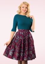 Je zult zo elegant en trots als een pauw zijn wanneer je deze Frankie Peacock Swing Skirt in Purple draagt! De print is gewoonweg adembenemend… draag haar onder je favoriete top of cardigan, ze maakt al jouw outfits helemaal af! De brede tailleband in combinatie met de geplooide semi-swing rok zorgt ervoor dat jij een super vrouwelijk fifties silhouet krijgt. Uitgevoerd in een luchtige maar stevige, paarse katoenmix met een lichte stretch voor een heerlijk draagcomfort. Be a peacock in a world full of ducks 😉 * Semi-swing * Brede tailleband * Stolpplooien * Zijwaartse steekzakken * Blinde rits en haaksluiting achterzijde * Onze gorgeous Rachel is 1,72 m