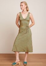 Als je nog geen last had van zomerkriebels, dan krijg je ze wel van deze flowy jurk! Anna accentueert je taille door het smalle, afneembare stoffen striklintje en is uitgevoerd in een soepele en stretchy, EcoVero viscosemix met een grafische print in zalmoranje, groentinten, navy en een vleugje wit. * Gevoerde top * Mouwloos * V-halslijn met plooitjes * V-rug * Afneembaar stoffen striklintje * Geen rits of knopen * Valt bij een lengte van 1,70 m over de knie