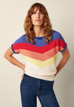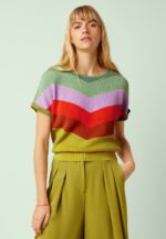 “Retro stripes, modern comfort.” Deze cutie mag niet ontbreken in je garderobe, want ze is een echte must-have voor het komende seizoen! Ze is super comfortabel en uitgevoerd in een soepele, fijngebreide organische katoen, voorzien van een gestreept patroon in retro kleuren. * Hoge halslijn * Korte kapmouwtjes met vaste omslagjes * Stretchy ribboord * Lang genoeg om op een normale heupbroek te dragen