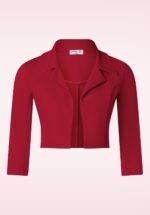 ”When your style speaks louder than words!” Deze stijlvolle en veelzijdige bolero blazer Jackie is alles wat je nodig hebt! Ze heeft een puntige kraag, 3/4 mouwtjes en is uitermate geschikt als statement piece voor je outfit naar kantoor of als kort jasje over je zomerjurk tijdens een frisse avond. Ze is uitgevoerd in een iets dikker, stretchy, crêpe achtig stofje in rood, dat super comfortabel draagt! * Bolero blazer * Puntige kraag * 3/4 mouwen * Niet gevoerd! * Géén sluiting