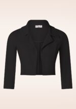 ”When your style speaks louder than words!” Deze stijlvolle en veelzijdige bolero blazer Jackie is alles wat je nodig hebt! Ze heeft een puntige kraag, 3/4 mouwtjes en is uitermate geschikt als statement piece voor je outfit naar kantoor of als kort jasje over je zomerjurk tijdens een frisse avond. Ze is uitgevoerd in een iets dikker, stretchy, crêpe achtig stofje in zwart, dat super comfortabel draagt! * Bolero blazer * Puntige kraag * 3/4 mouwen * Niet gevoerd! * Géén sluiting