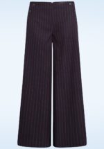 “Statement trousers alert!” Creëer de meest prachtige looks met deze Pia Pinstripe pantalon. Dankzij de vrouwelijke hoge taille en de wijde pijpen is ze dé perfecte klassieker die jarenlang meegaat. Ze is uitgevoerd in een stevige maar soepele stofmix in nachtblauw, voorzien van een rode pinstripe. * High waist model * Steekzakken voorzien van knopen! * Blinde rits met haaksluiting achterzijde * Wijde pijpen * Combineer haar met het bijpassende Cissy Pinstripe gilet in nachtblauw