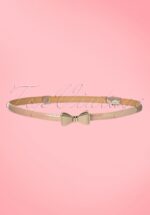 Deze 50s Ocean Avenue Bow Belt is een classy riem in vintage look en een aanvulling op elke vintage outfit. Deze prachtige smalle verstelbare ceintuur is uitgevoerd in nudekleurig ‘faux’ lakleder met een elegant goudkleurig strikje, très chique! Subtiel riempje met een hoge wow-factor en een echte must-have voor alle vintage ladies! * Sluit d.m.v. goudkleurige haaksluiting in de vorm van strikje * Verstelbaar