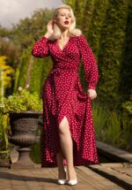 Topvintage exclusive ~ Carina polkadot maxi wikkeljurk in rood en wit