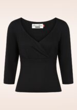 “The V-neck that does all the talking!” Ze heeft een V-hals met overslag, 3/4 mouwen en is gemaakt van een zachte, stretchy viscosemix die je lichaam omarmt en een flatterende, comfortabele pasvorm biedt. “Black, beautifully draped, boldly you.” * V- halslijn met overslag * Plooien bij de buste * 3/4 mouwen * Lang genoeg om op een mid-waist broek of rok te dragen * Gorgeous Sam is 1,70 m * Exclusief bij Topvintage verkrijgbaar