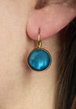 Vergulde dot oorbellen in levendig blauw